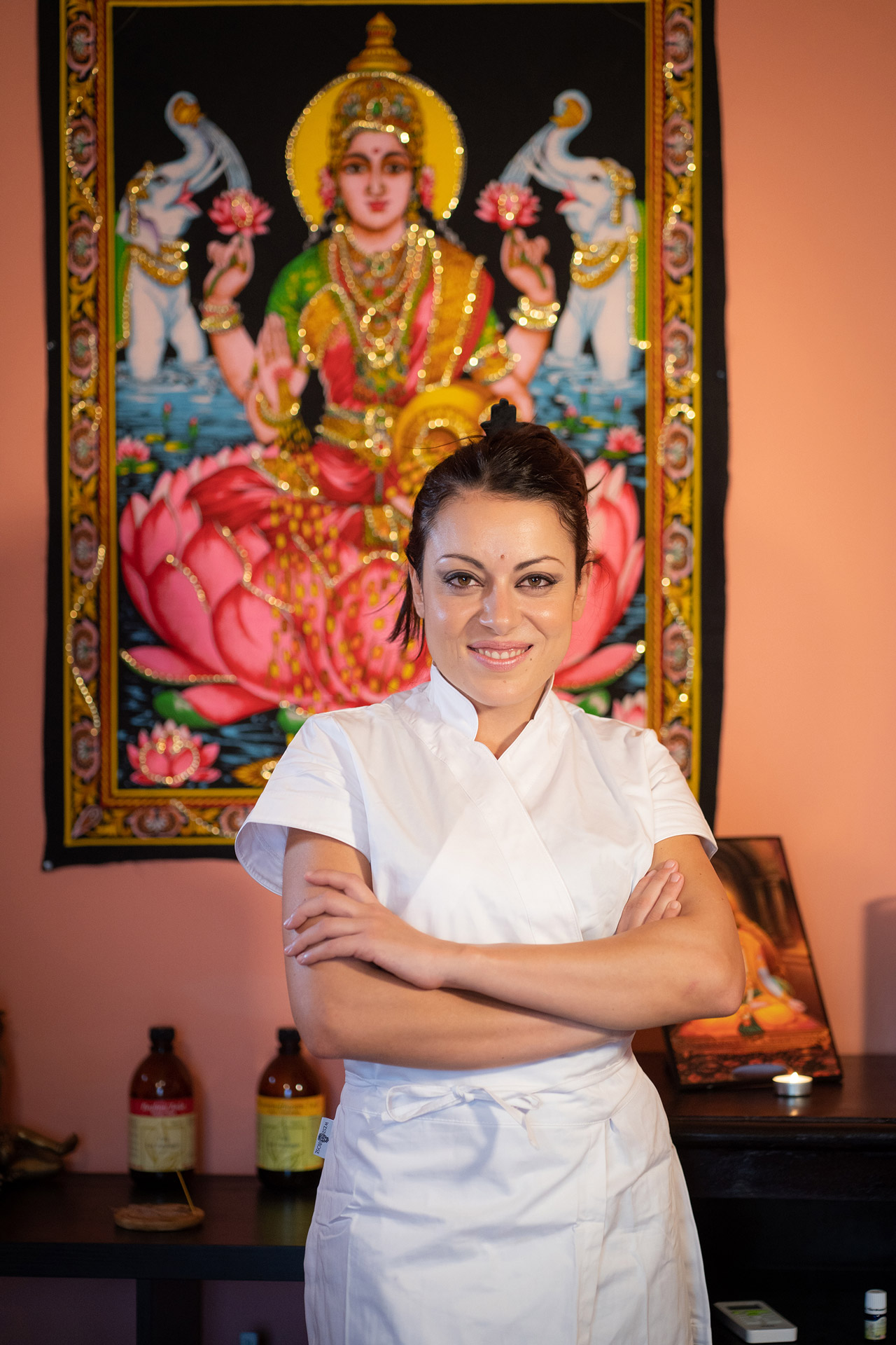 Decido, per la mia natura di ballerina classica e quindi di perfezionista, di spingermi all’estero, dove studio il Thai tradizionale alla Wat Pho Thai Traditional Massage School a Bangkok in Thailandia e in India a sud del Kerala, dove mi immergo nell’antica scienza dell’Ayurveda e trovando in essa la mia massima espressione, e dove durante una consulenza di astrologia vedica vengo a conoscenza dei miei legami karmici con la figura della devadasi, “la Bayadere” interpretata non a caso al mio diploma di danza classica, questo mi lega all’India ancora di più.